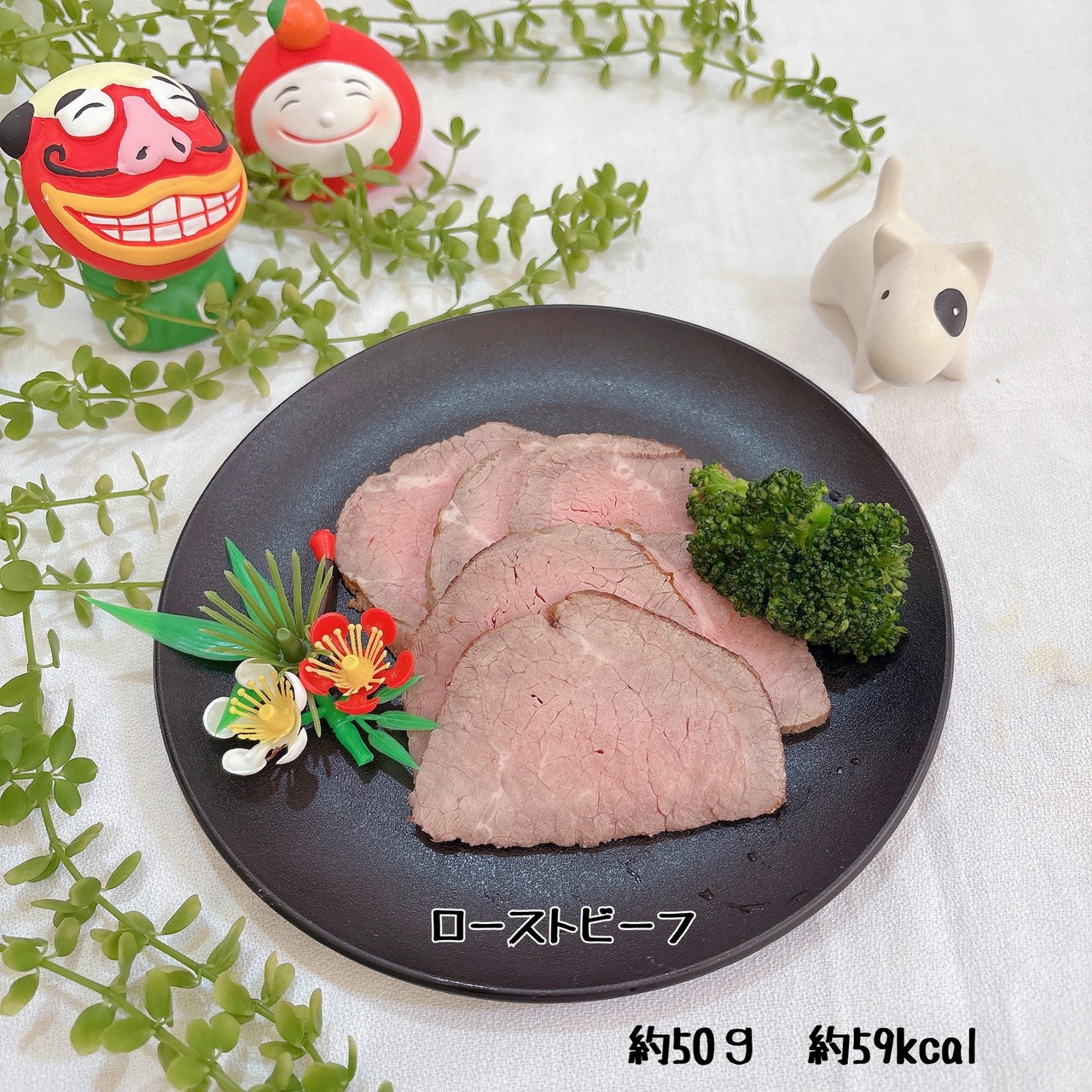 ・牛もも肉、オリーブ油・にんにく・ブロッコリー。